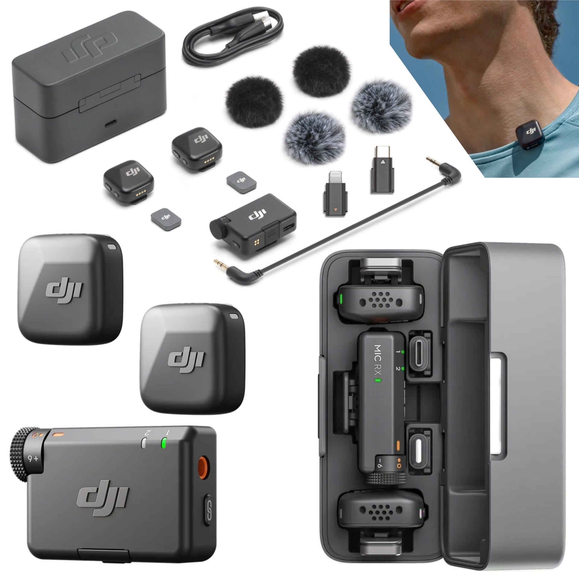 The carrying case has its own internal battery that can re-fill the batteries of the transmitters and receiver three times before everything has to be plugged into the included USB-C power supply.   We are pricing both DJI systems the same.  If you need onboard 32bit backup recording and the option of using lapel mics, then the Mic 2 has you covered.  But if you prioritize simplicity and low size/weight over everything else, this Mic Mini system is the way to go.