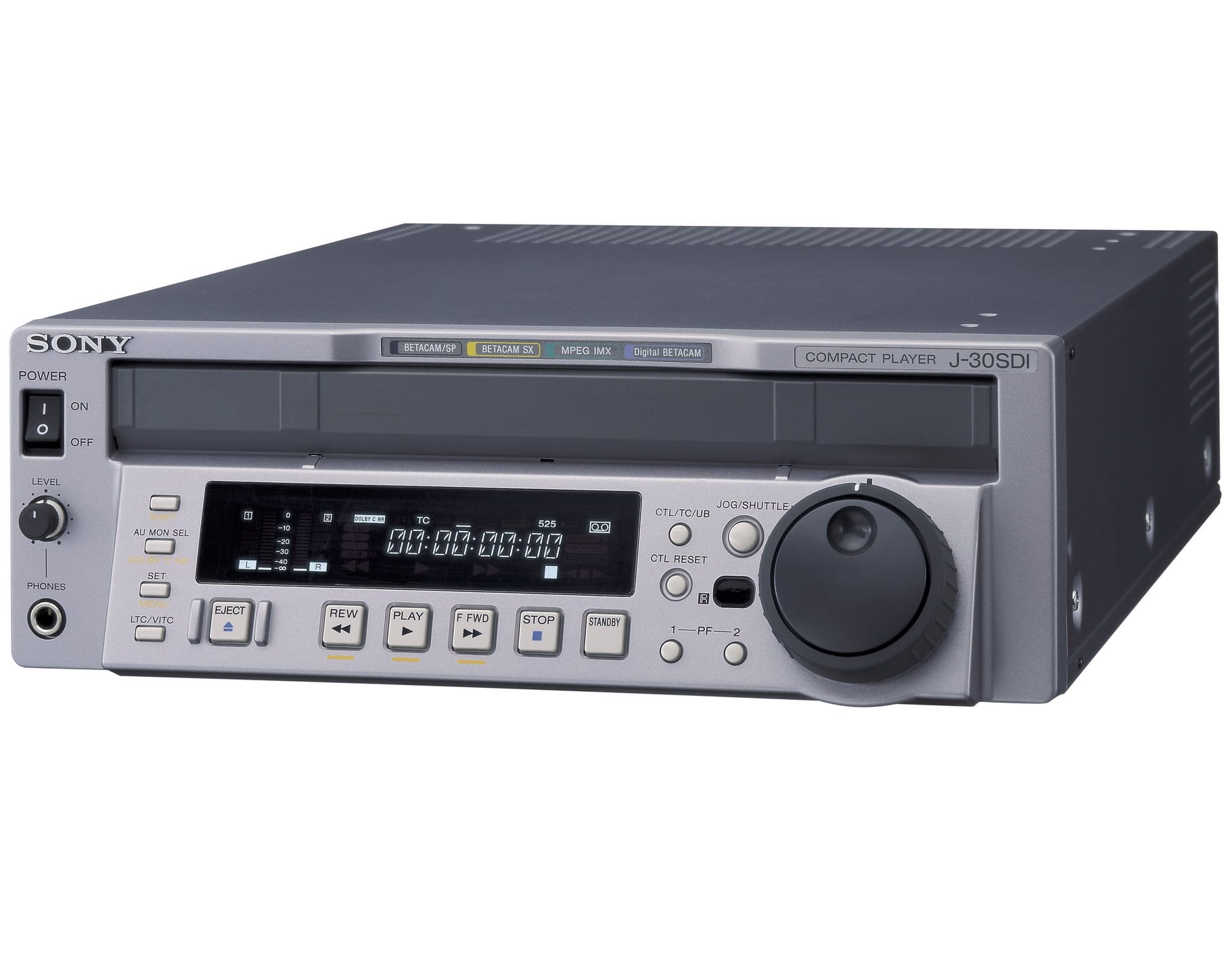 This is a solve all deck for the world of ½” tape. It takes all cassette sizes, and plays back the following Sony formats: Digital Betacam, Betacam SP, Betacam SX, and Betacam IMX. It has Composite, S-Video and for best quality, SD-SDI outputs. It also has a Firewire 400 output to convert these legacy formats to something easily useable. It has pro XLR outs for audio, as well as RCA outputs.
